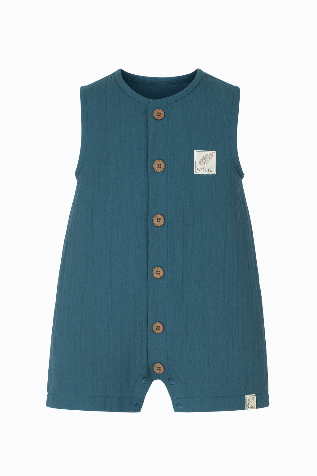 Deja que tu pequeño tesoro explore el mundo con total comodidad en este enterizo sin mangas en muselina, una pieza transpirable y acogedora perfecta para los días más cálidos. Confeccionado en tela de muselina ligera, este enterizo mantiene a tu bebé fresco mientras aporta un estilo encantador y sin esfuerzo.